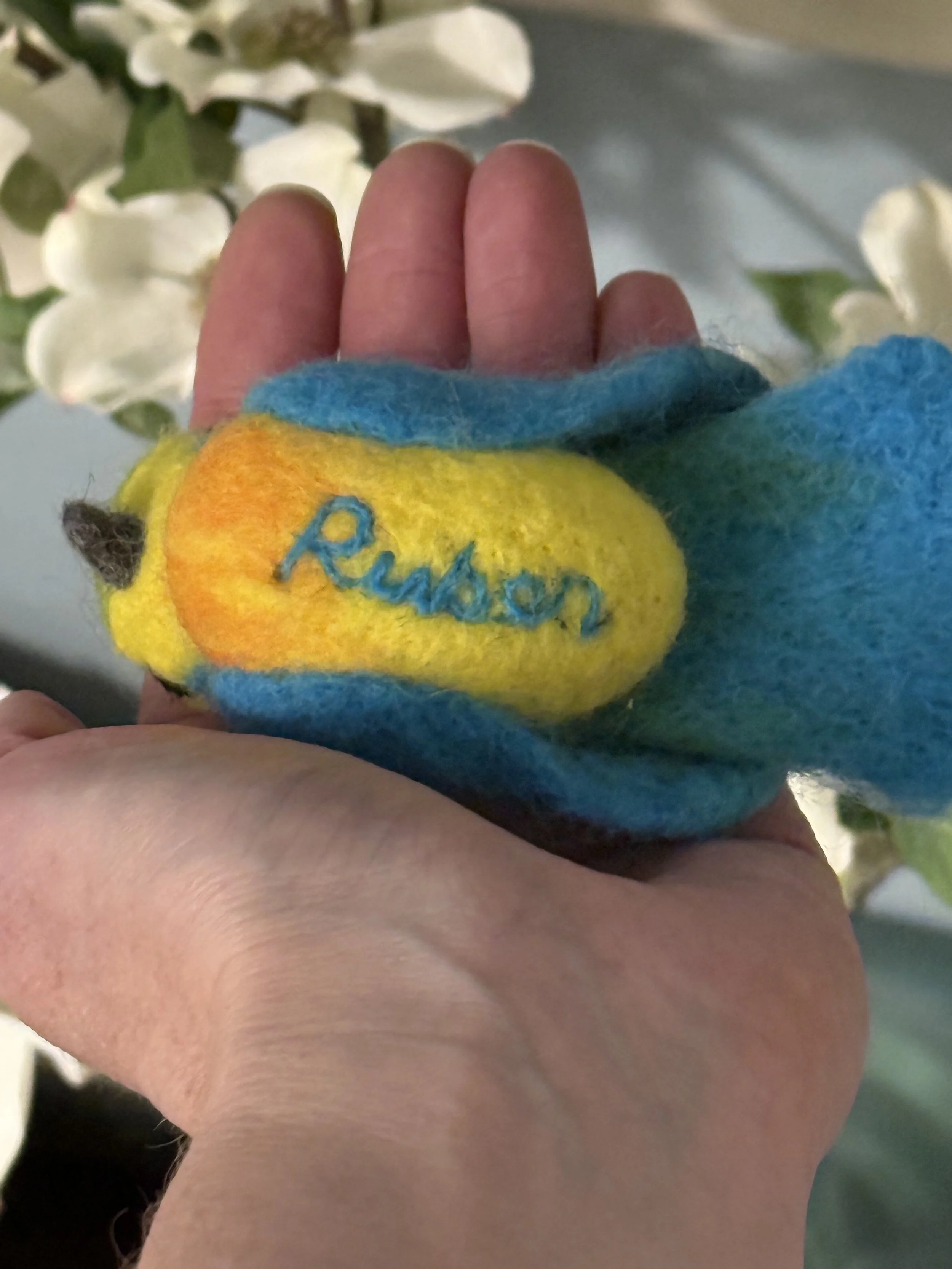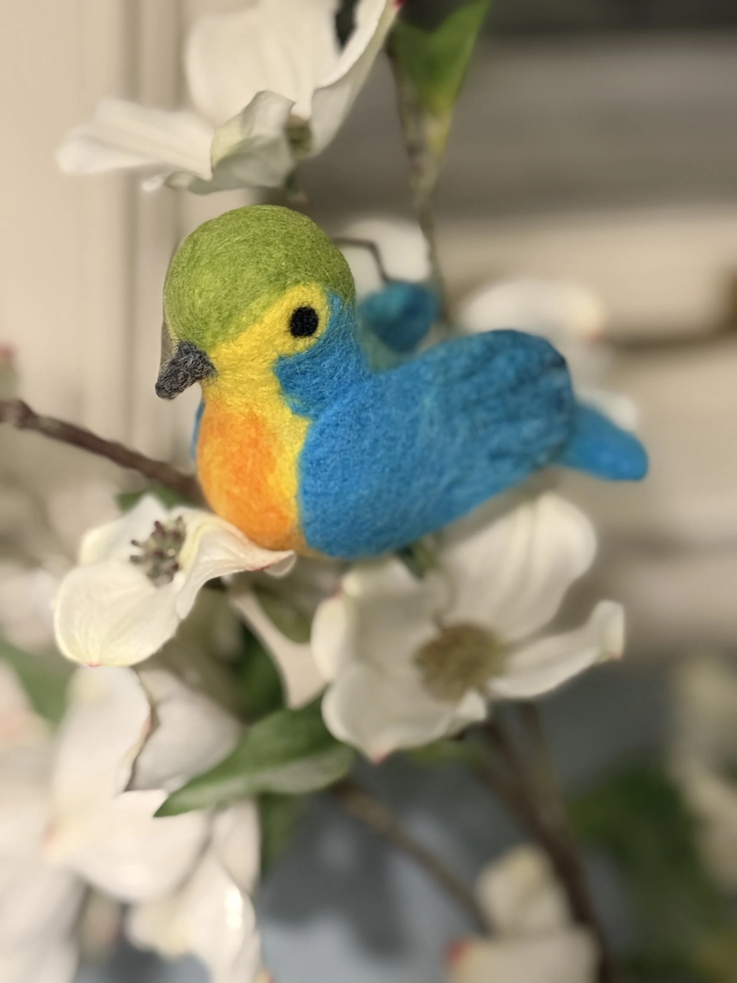 I create your bird slowly and intentionally. I hand‑felt the bird using wool, needle, and time. I choose a bird species from that person’s country of origin—something that carries a small piece of home.